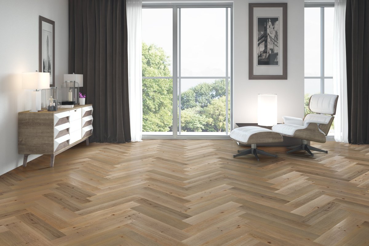 • Напольное покрытие елочка добавляет динамики интерьеру